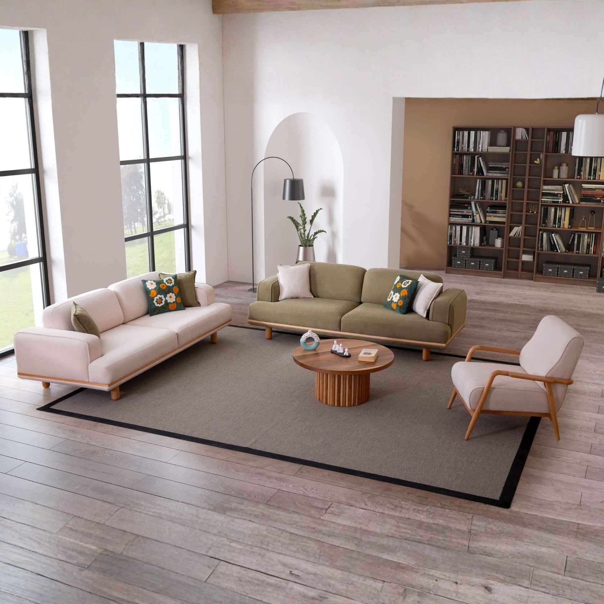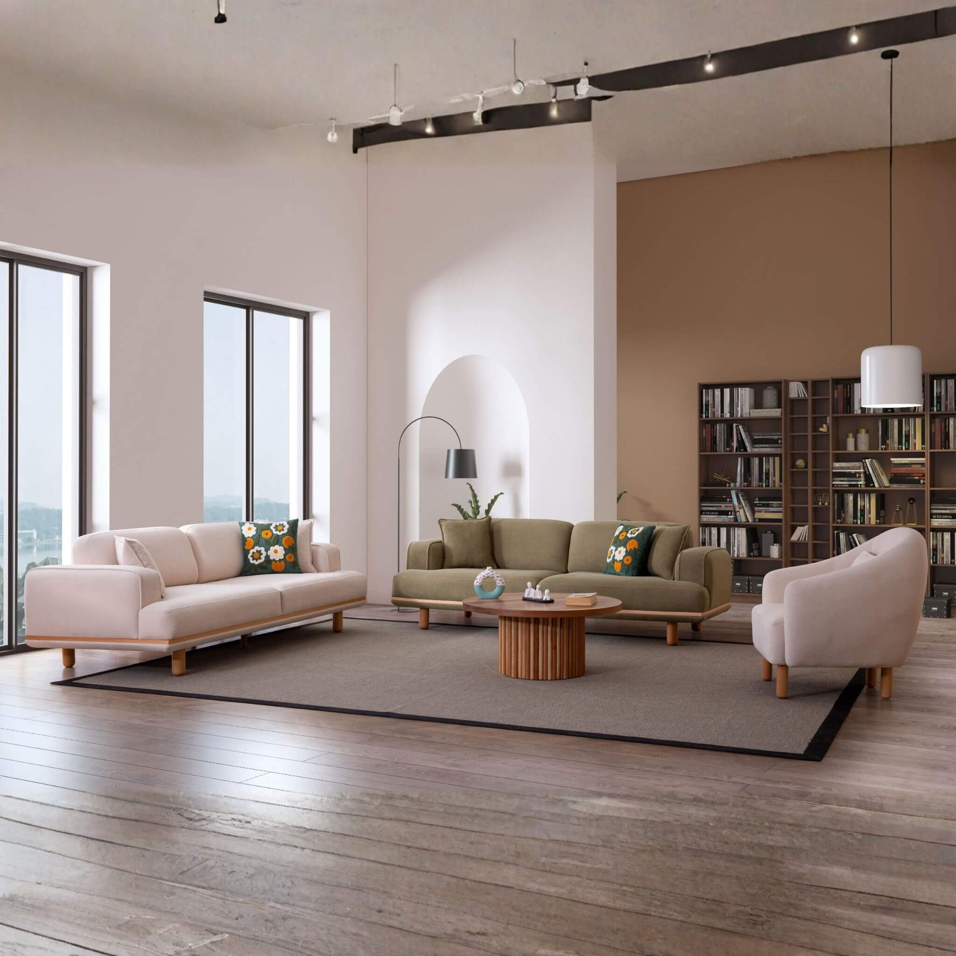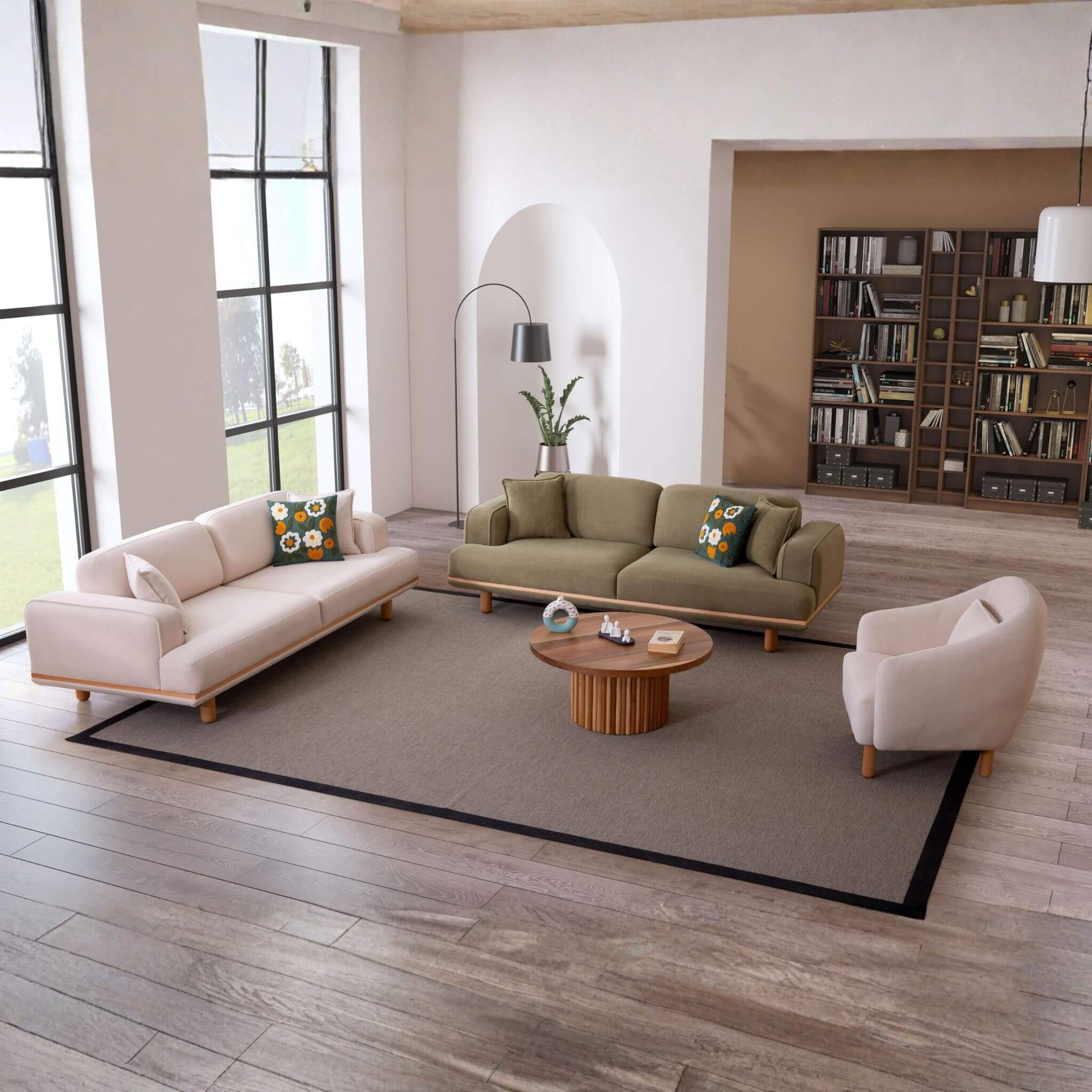 Verde Koltuk Takımı, bohem yalın çizgileri doğal tonlarla buluşturan sıcak ve samimi bir tasarıma sahiptir. Yumuşak hatlı oturum formu ve sade estetik görünümüyle hem şehir yaşamına hem de geniş alanlara mükemmel uyum sağlar.