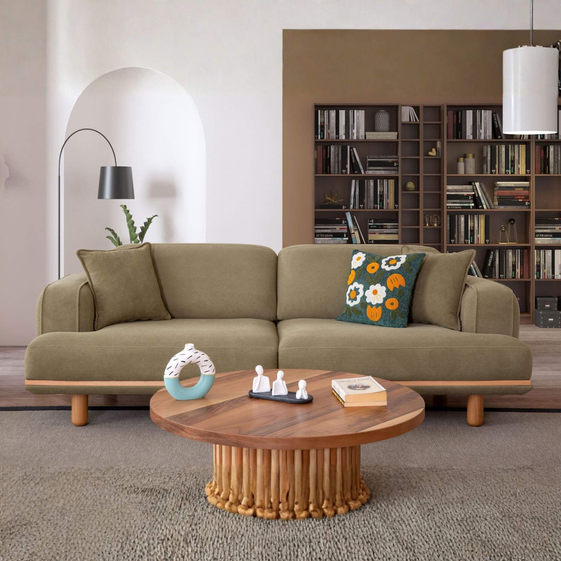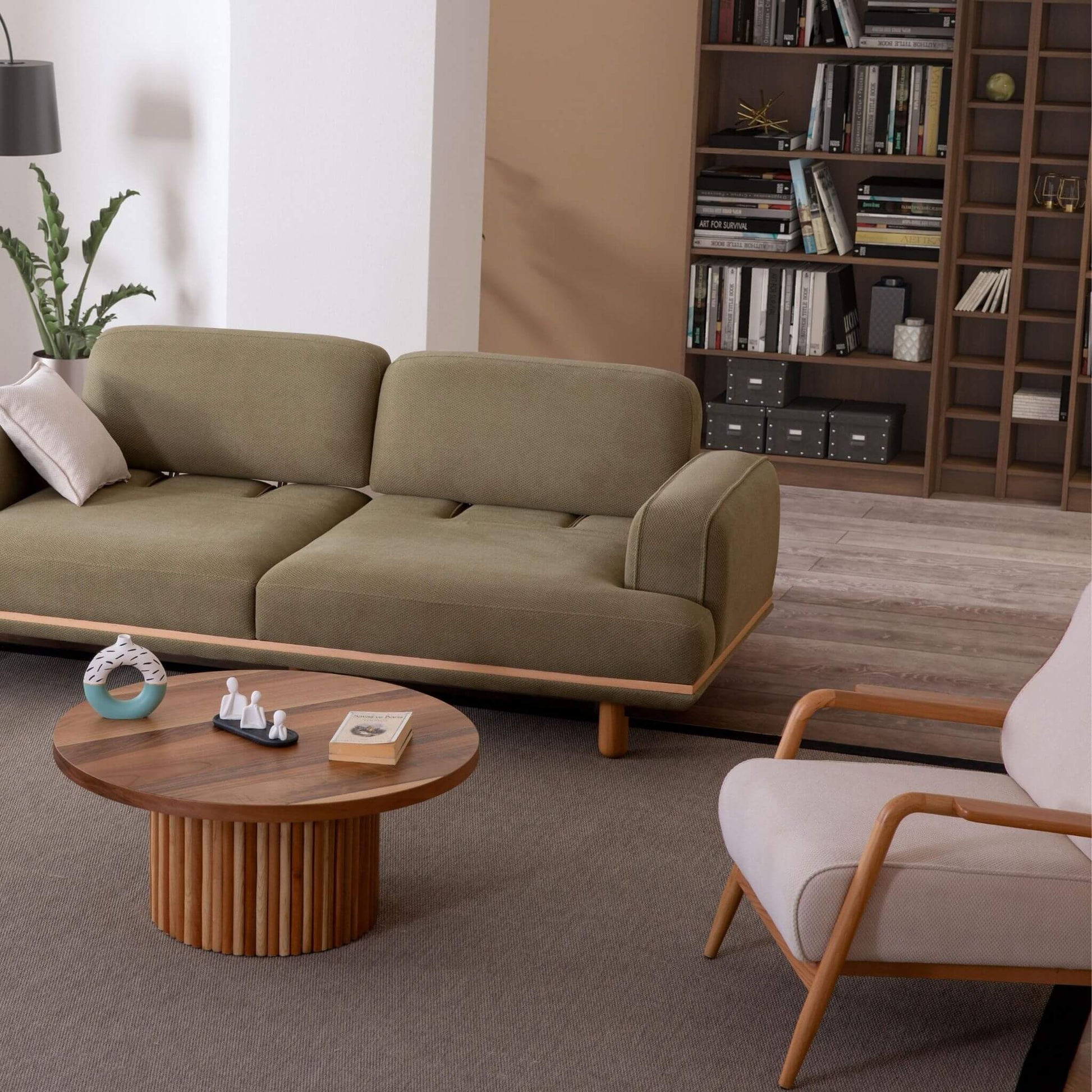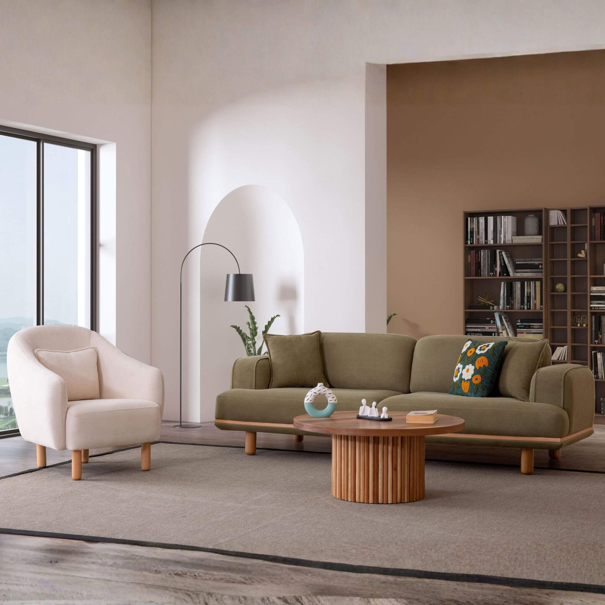 Verde Koltuk Takımı, bohem yalın çizgileri doğal tonlarla buluşturan sıcak ve samimi bir tasarıma sahiptir. Yumuşak hatlı oturum formu ve sade estetik görünümüyle hem şehir yaşamına hem de geniş alanlara mükemmel uyum sağlar.