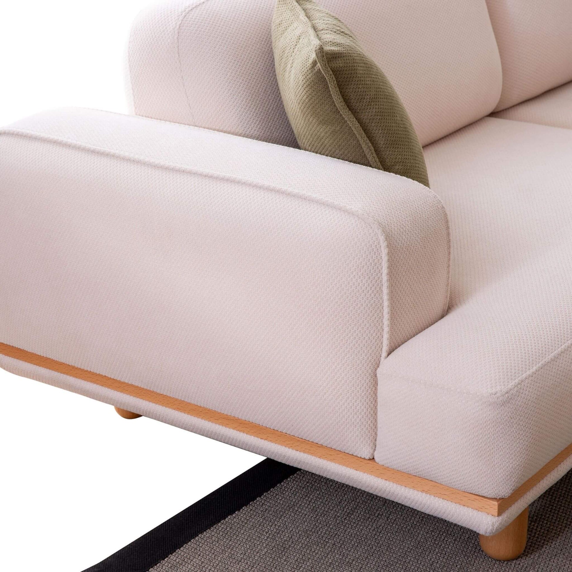 Ahşap ayak detayları, mekâna doğal bir dokunuş katarken; Yataş marka 32 DNS soft sünger yapısı uzun süre çökme yapmadan konforlu bir oturum sunar. Yerli örme dokuma kumaşı sayesinde yumuşak, dayanıklı ve kolay temizlenebilir bir yüzey elde edilmiştir.